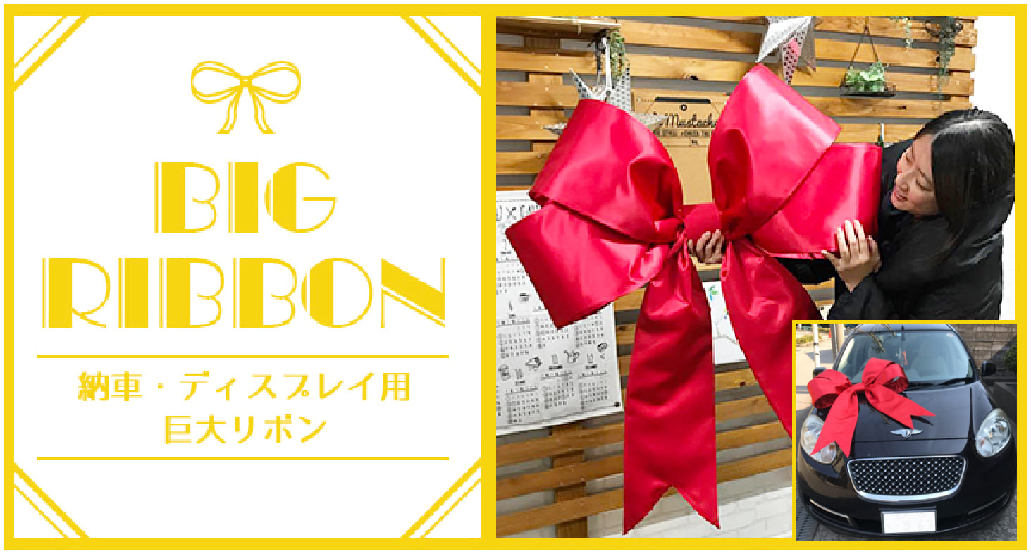 全国の車屋さんから注文殺到中。オーダーで巨大リボンを作成しております。お好きな色や大きさで作れます。最短3日で発送できます!