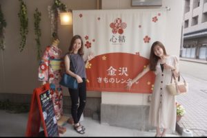 金沢観光初日に水引を体験し、髪飾りやイヤリングを作ります。観光2日目、前日に作った水引のアクセサリーを持参し、レンタル着物屋さんへ!!